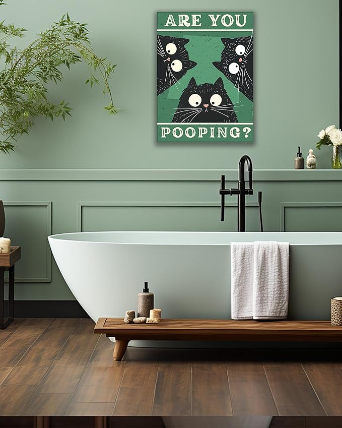 - Humorous Design: This funny black cat wall art adds a playful touch to your bathroom decor, perfect for anyone who loves quirky and amusing decorations.
