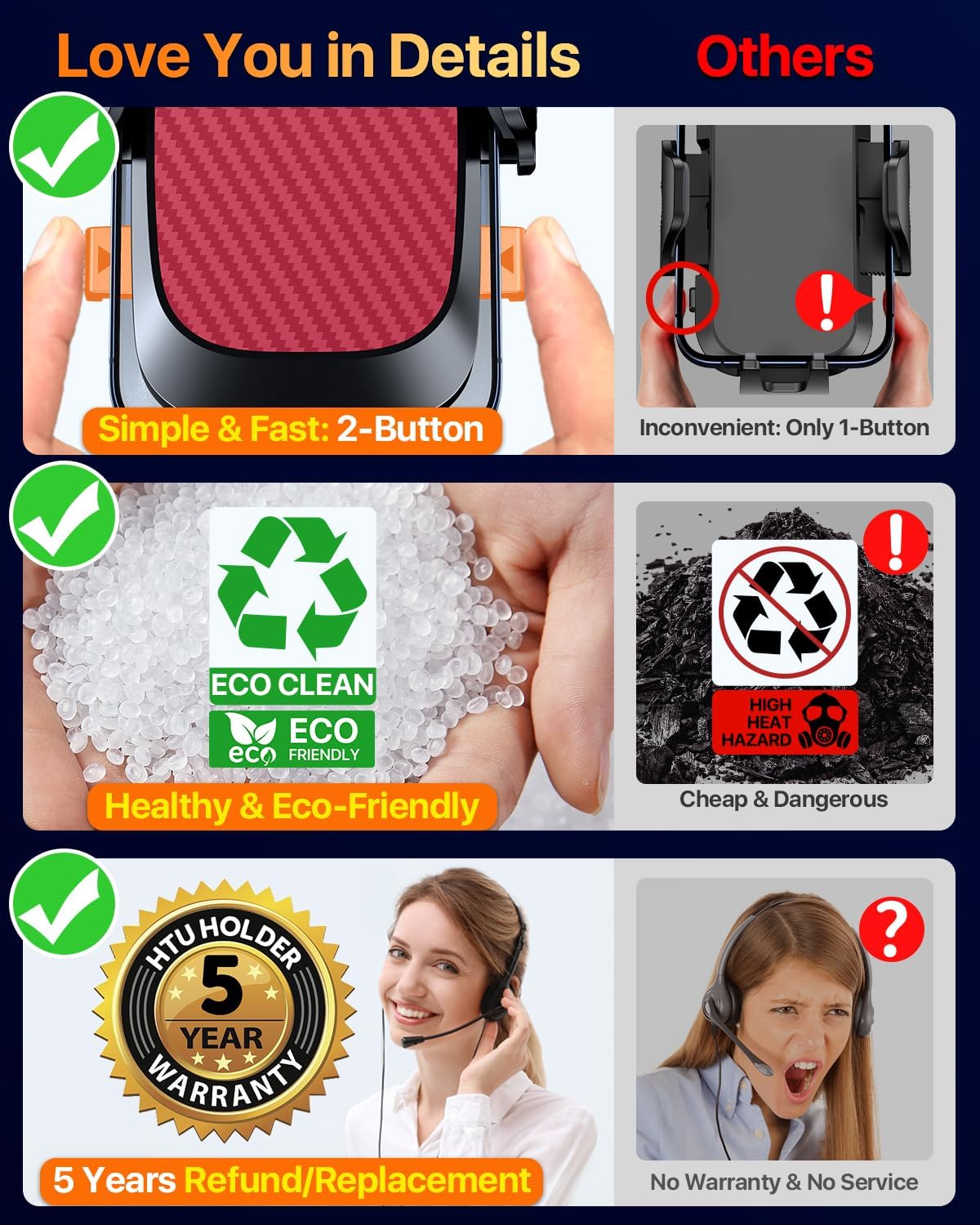 HTU 2025 Best Car Phone Holder 【Ultimate 5-in-1 & Upgraded 100+LBS Strongest Suction】【True Military-Grade & Safety Cert】 360° Windshield Dashboard Vent Mount Stand for iPhone Android & Truck, Red