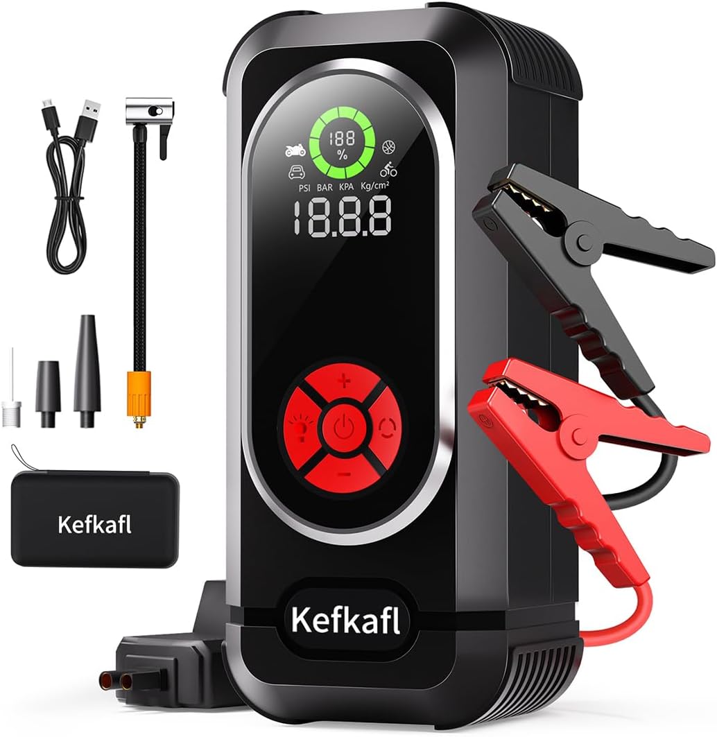 - ➤【WHAT YOU GET & WARRANTY】1*Jump Starter with Air Compressor, 1*Smart Jump Cable, 1*USB-C Charging Cable, 1*Air Hose, 3*Air Nozzles, 1*User Manual, 1*Storage Bag. We offer 12-Month Warranty and Lifetime Technical Support. Any question, we will help solve the question quickly.