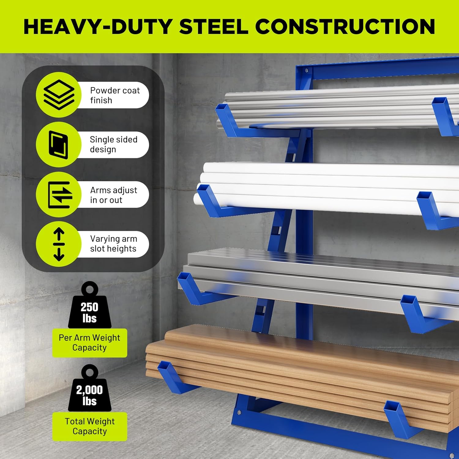 - Wide Application: Great for garage, workshop, shed, outdoor workspace or any area where long items need to be stored neatly; This is a very strong storage solution for lumber, firewood, sheet metal, PVC, ladders, skis, snowboards, golf clubs and more!