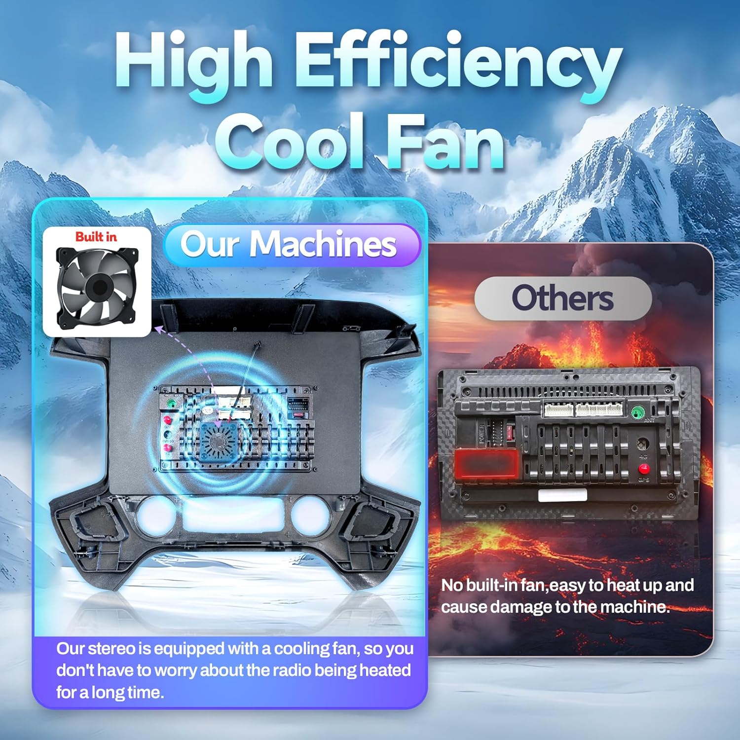 - Backup Camera & Mic:Equipped with an AHD waterproof camera, offering a 170° wide-angle view and enhanced night vision capabilities; When reversing,the image captured by the rear camera will automatically display on the silverado screen;Extra mic to increase call volume;For 2014-2018 silverado headunit with an intelligent cooling system with four modes protects your radio from overheating by triggering automatically at high CPU load or volume