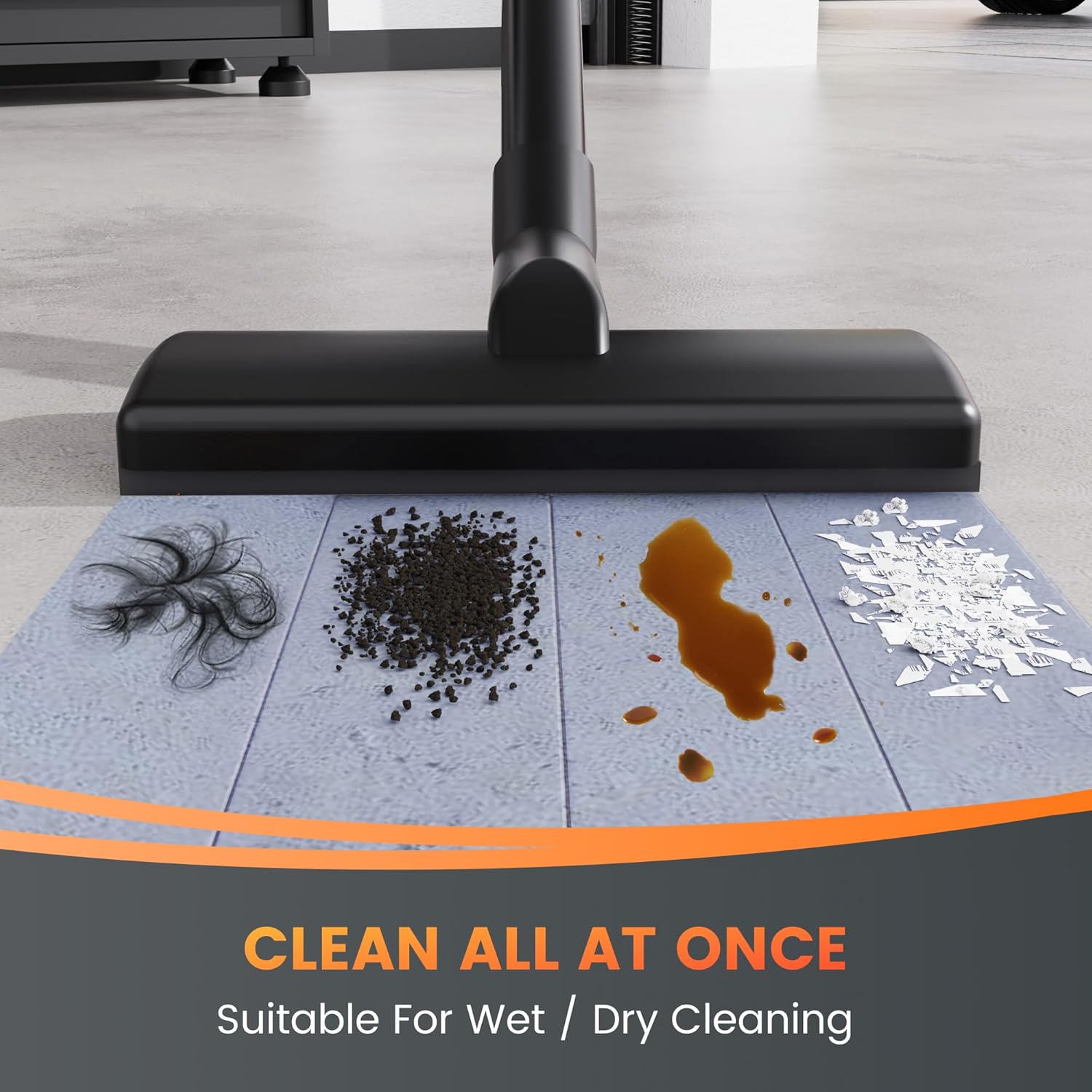- Wet Dry Vacuum Cleaner Equipped 6 Nozzles: Utilizing a wall-mounted design for both machine and accessories all in space. Comes with 6 attachments to effortlessly master wet and dry cleaning, swiftly eliminating dust, sand, paper debris, hair, food scraps, and liquid spills.