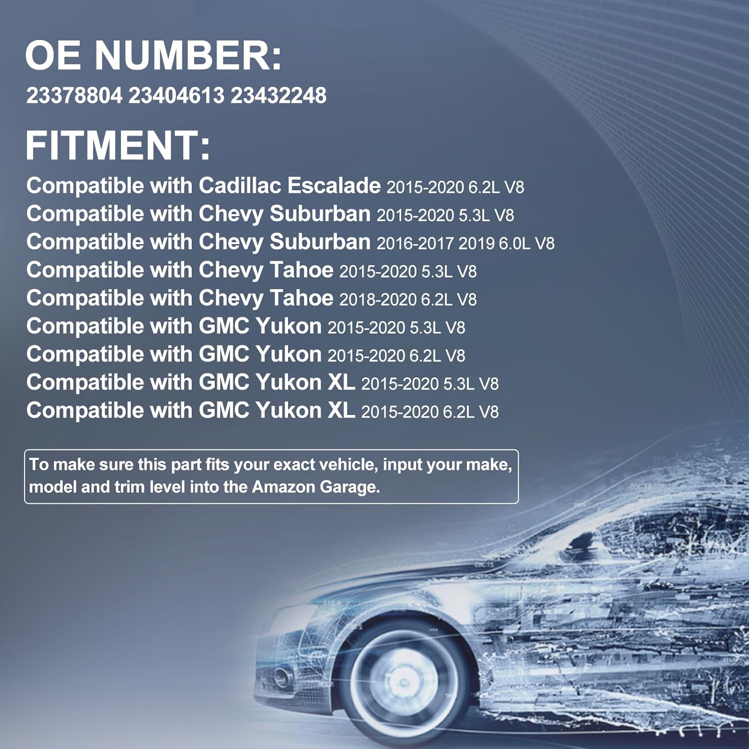- Fitment: Compatible with Cadillac Escalade 2015-2020 6.2L V8 | Compatible with Chevy Suburban 2015-2020 5.3L V8 | Compatible with Chevy Suburban 2016-2017 2019 6.0L V8 | Compatible with Chevy Tahoe 2015-2020 5.3L V8 | Compatible with Chevy Tahoe 2018-2020 6.2L V8 and more.To make sure this part fits your exact vehicle, input your make, model and trim level into the Amazon Garage.Attention: The track line of reversing camera depends on whether your car has.