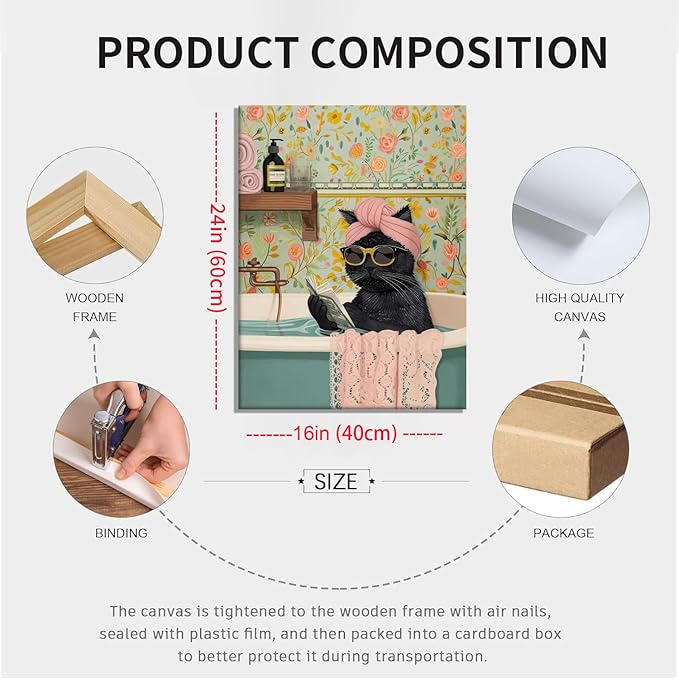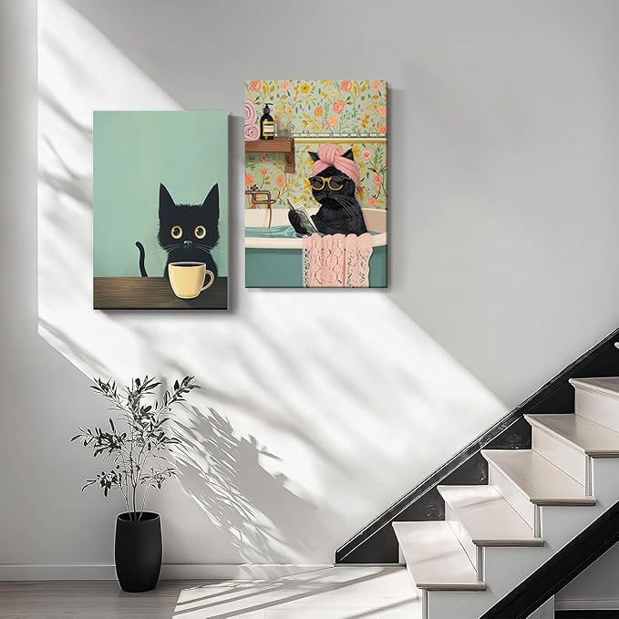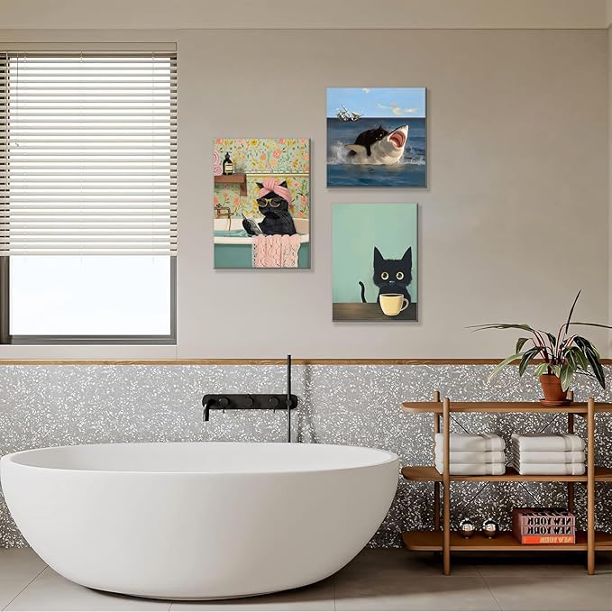 - Funny Bathroom Wall Art: This delightful black cat bathroom canvas art adds a whimsical touch to your space, making it the perfect humorous addition to your bathroom decor.