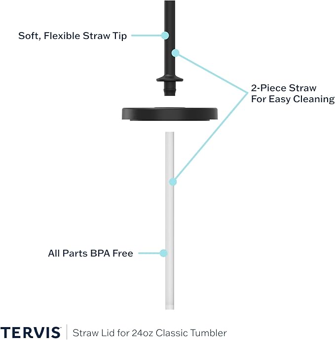 - Straw Lid is BPA-free; minimizes spills; presses securely in place and removes easily with an ergonomic tab. The soft, flexible straw tip detaches in 2 pieces for easy cleaning.