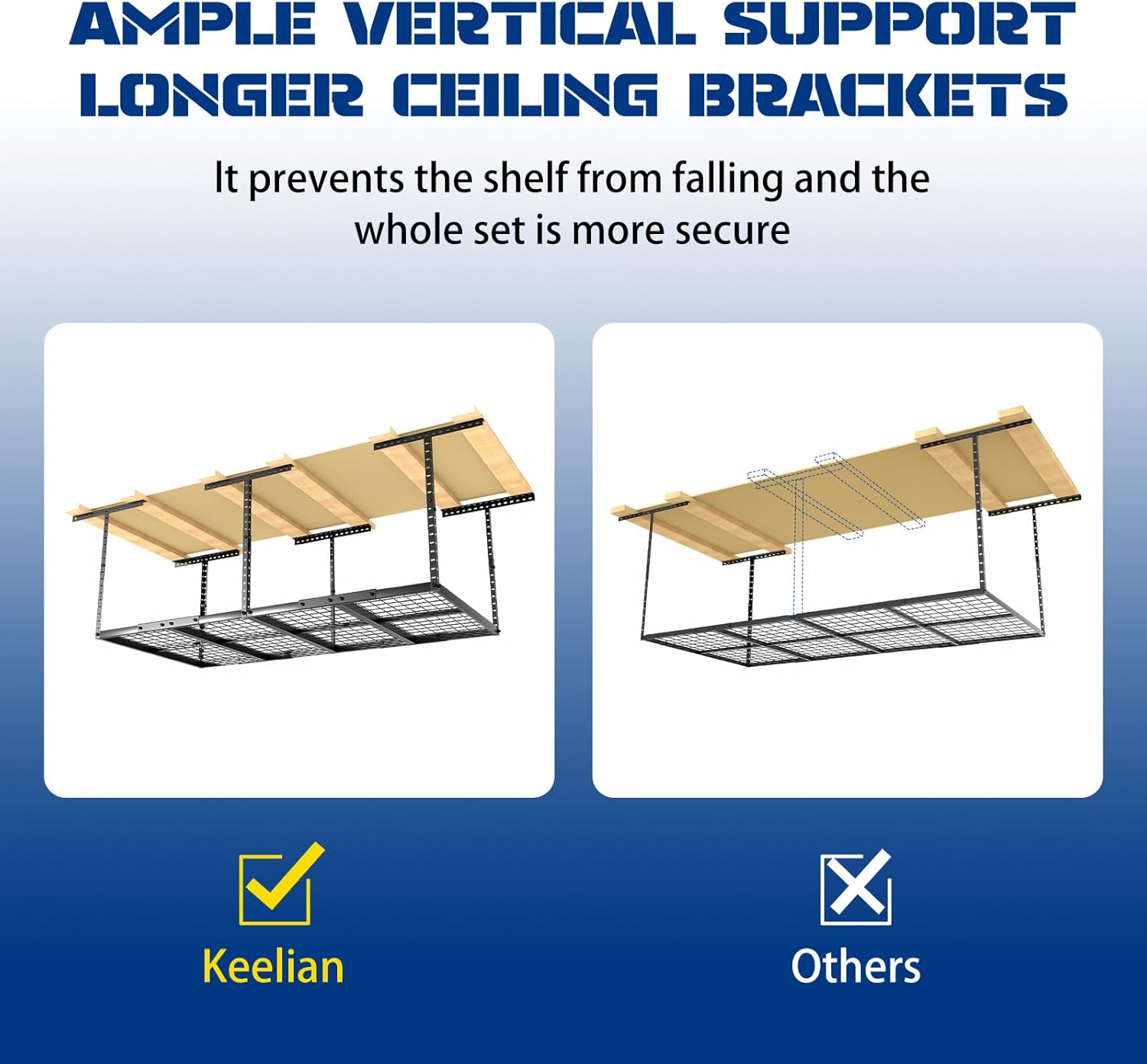 Heavy-Duty 3x8 Overhead Garage Storage Rack with Adjustable Ceiling Shelving with 600lbs Weight Capacity,22 lbs per Hook, Steel Hanging Organizer for Tools, Bins & Bikes Black
