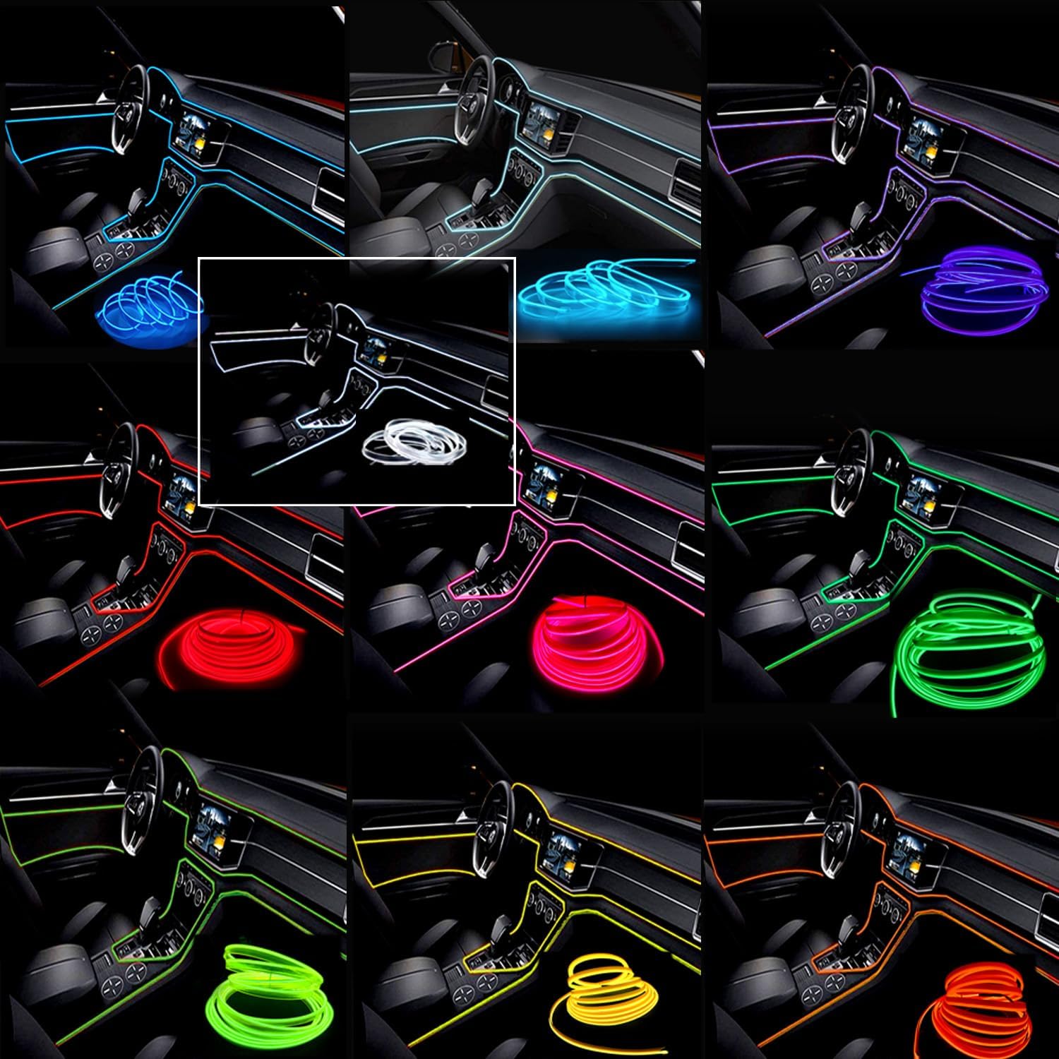 - [Installation] The EL wire can be inserted into the gaps or spaces of car panels and interior trim, making it ideal for decorating car interiors, such as under doors or along dashboard edges. It can also be secured to surfaces using adhesive tape, pins, wire tacks, etc.