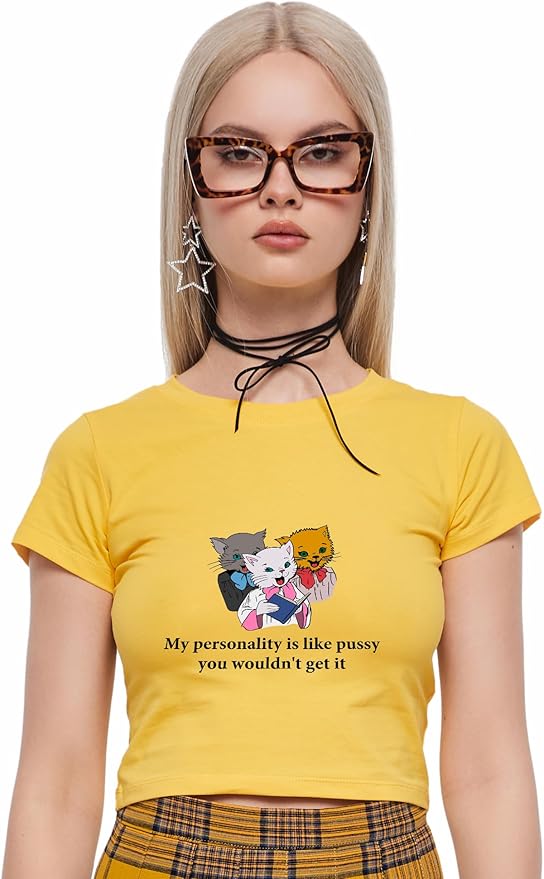 Y2K Graphic Tees for Women - Personality Like Cat Funny Short Sleeve Crew Neck Crop Tops Going Out Top T-Shirt