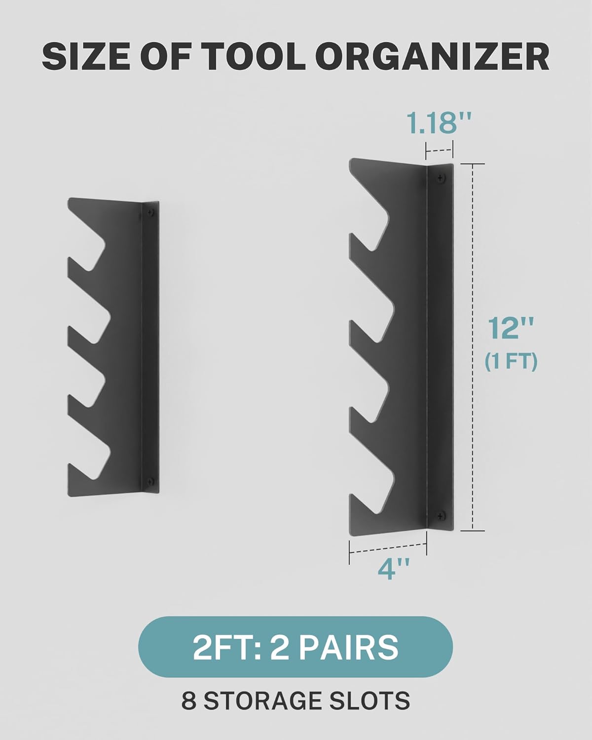 - Compact Space-Saving Design: Garage organizer keeps your shovels, rakes, brooms, and yard tools off the ground, promoting a tidy workspace while ensuring your tools remain in optimal condition and ready for your next project