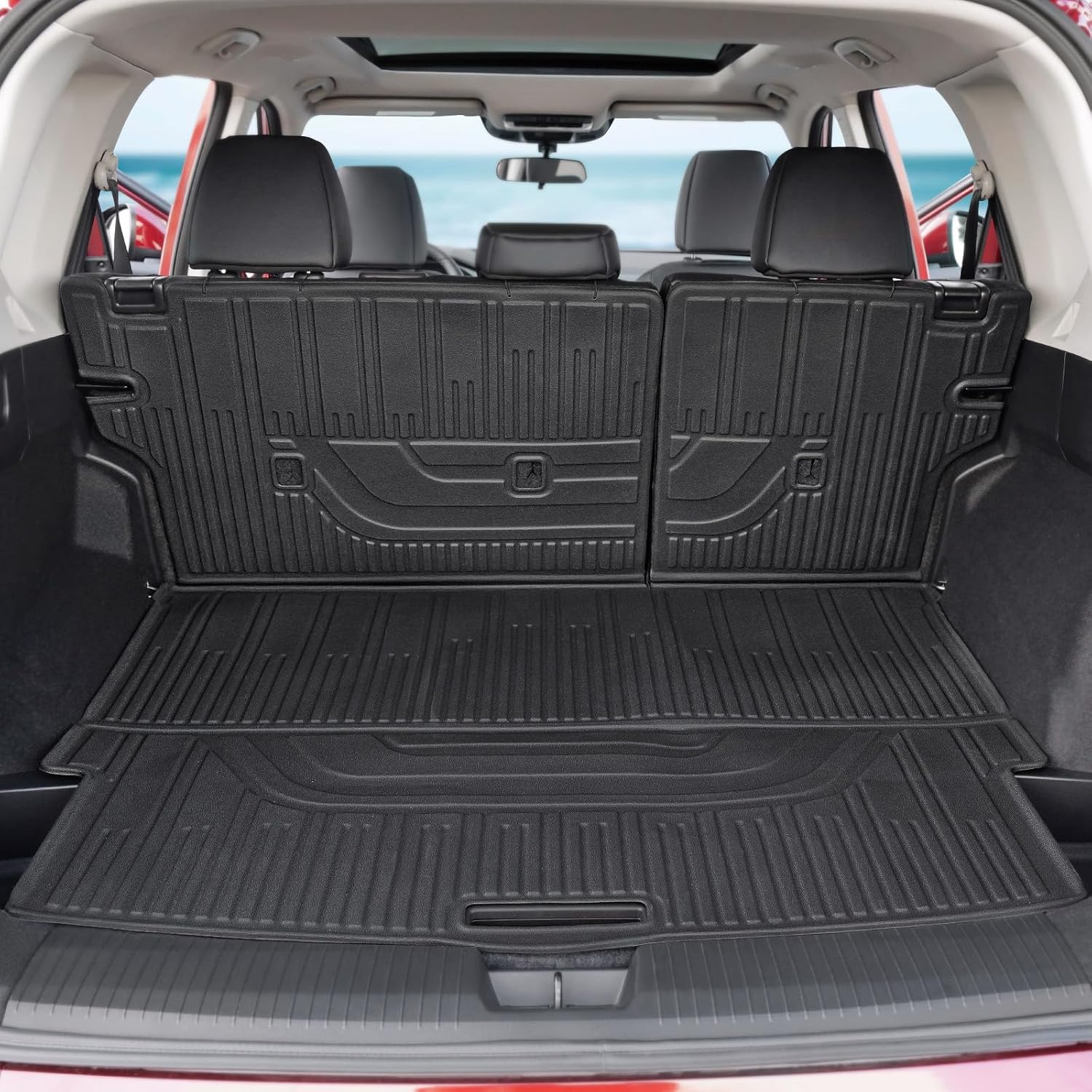 - Custom Fitment: Precisely designed with 3D laser scanning technology for 2021 2022 2023 2024 2025 Nissan Rogue S/SV/SL/Platinum(Not fit Rogue Sport). Includes 1st & 2nd row floor mats, 2-in-1 cargo liner with seat back protectors, 2PCS storage mats and 4PCS door sill guards – 40% more components than standard sets