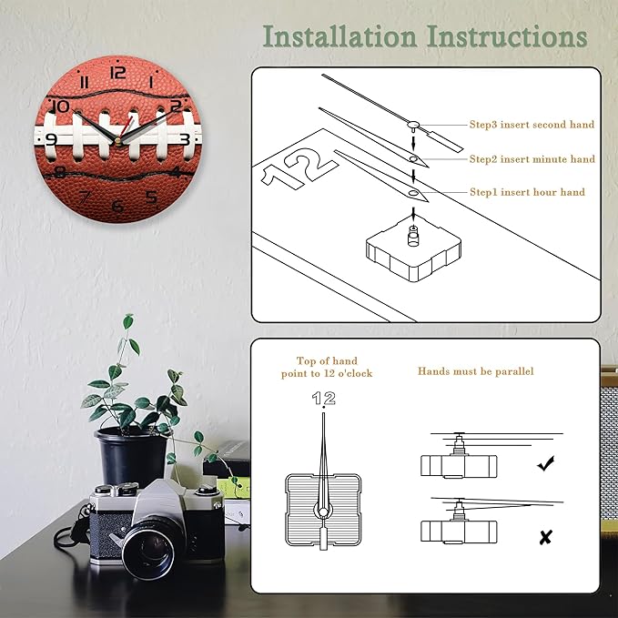 Wall Clocks,American Football Laces 10 Inch Wall Clock,Summer Small Battery Operated Wall Clocks Decorative for Kitchen/Living Room/Bedroom/Bathroom/Dining Room