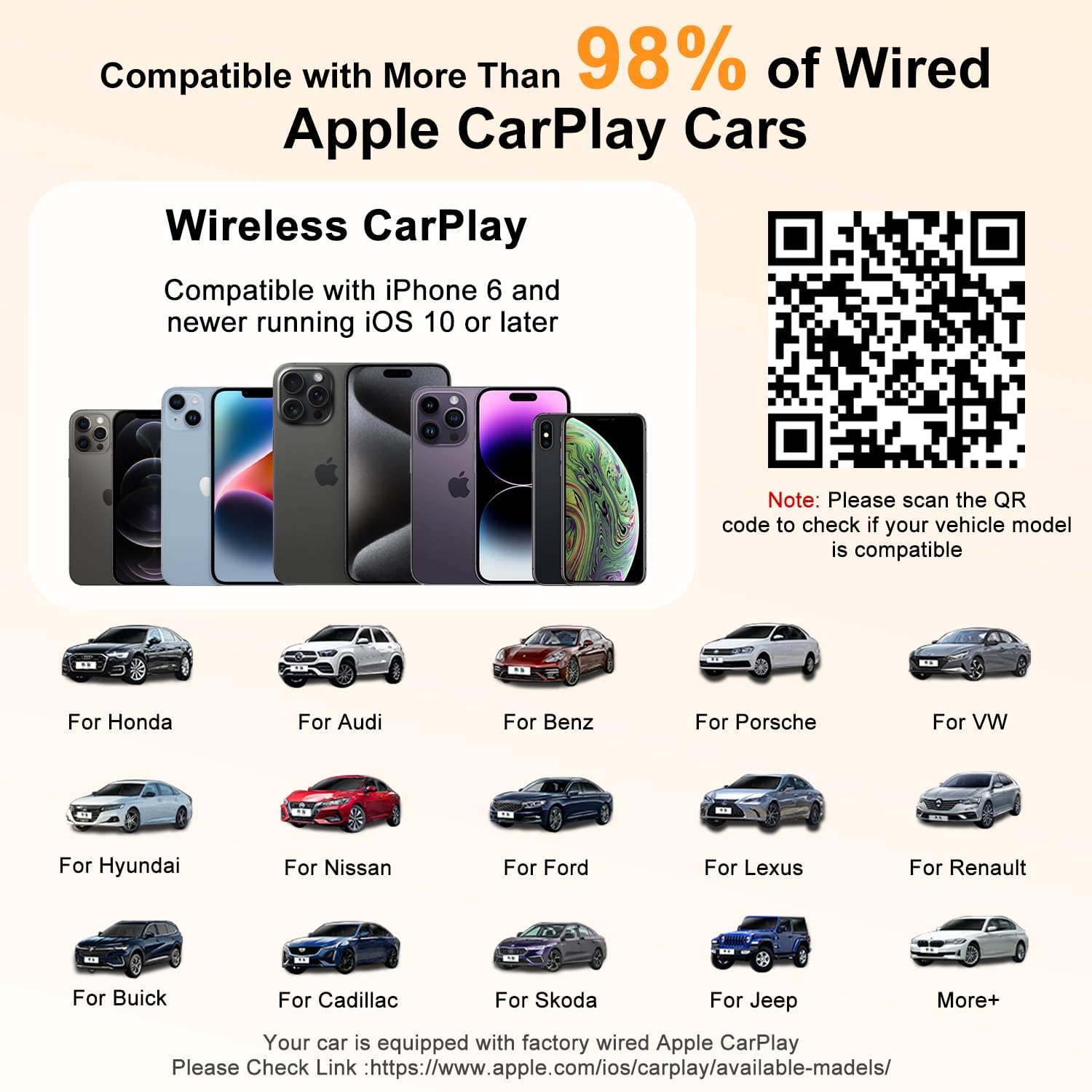 - Universal Compatibility: Our USB wireless car play adapter is compatible with Apple wired CarPlay cars equipped with produced in 2016 and later, compatible with iPhone 6 and later, and for IOS 10 and later phone versions. The package comes with accessories: a USB A to USB C adapter, suitable for vehicles with USB ports or Type C ports. (Does not support Android Auto and is not compatible with Android phones.)