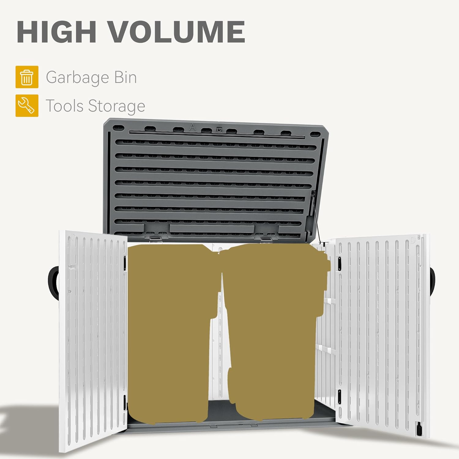 DWVO Outdoor Storage Shed, Weatherproof Resin, 35 Cu Ft Capacity, Horizontal Design, X-Shaped Lockable Door, Suitable for Bike, Garden Tools, Trash Cans, Light Gray