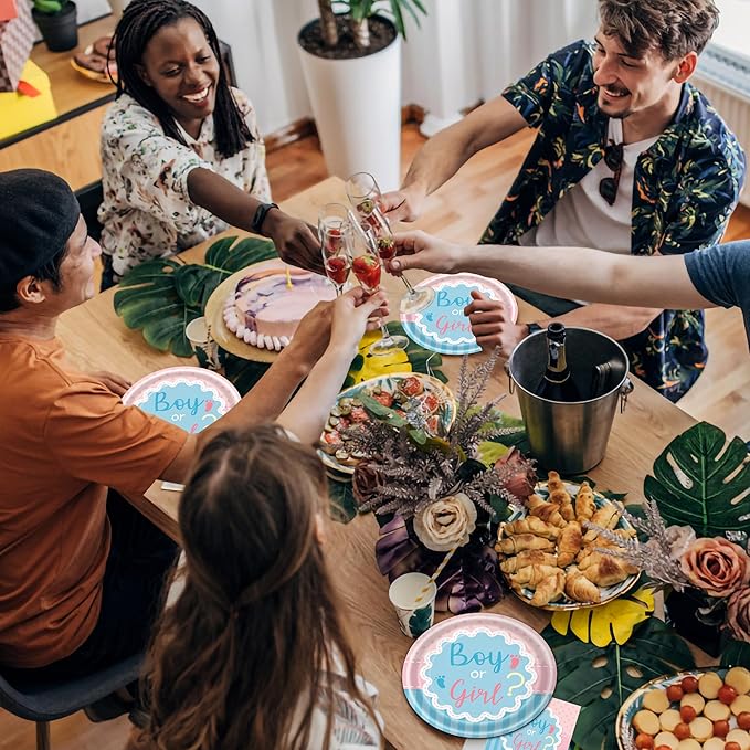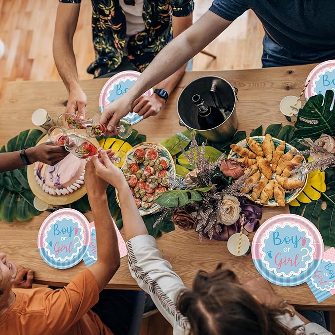 - 【Perfectly Design】This gender reveal paper plates set designs is designed with a warm blue and pink color scheme, and has a cute font in the center asking “boys or girls” and "it's a?". Let everyone participate in the discussion and feel the joy and happiness together. It is perfect for your celebration gathering, creating the most enjoyable activities for your friends and family, leaving behind interesting memories.