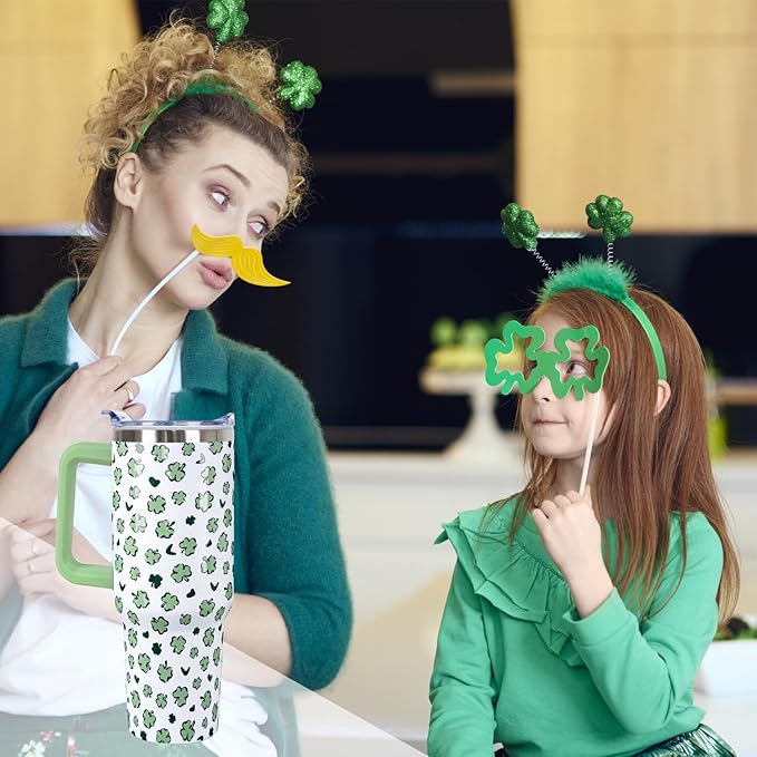 - Comfortable and convenient: The St. Patrick's Day Shamrocks tumbler includes a practical handle for a secure,cool-grip hold.It also comes with a spill-resistant lid a straw for easy, temperature-preserving sipping