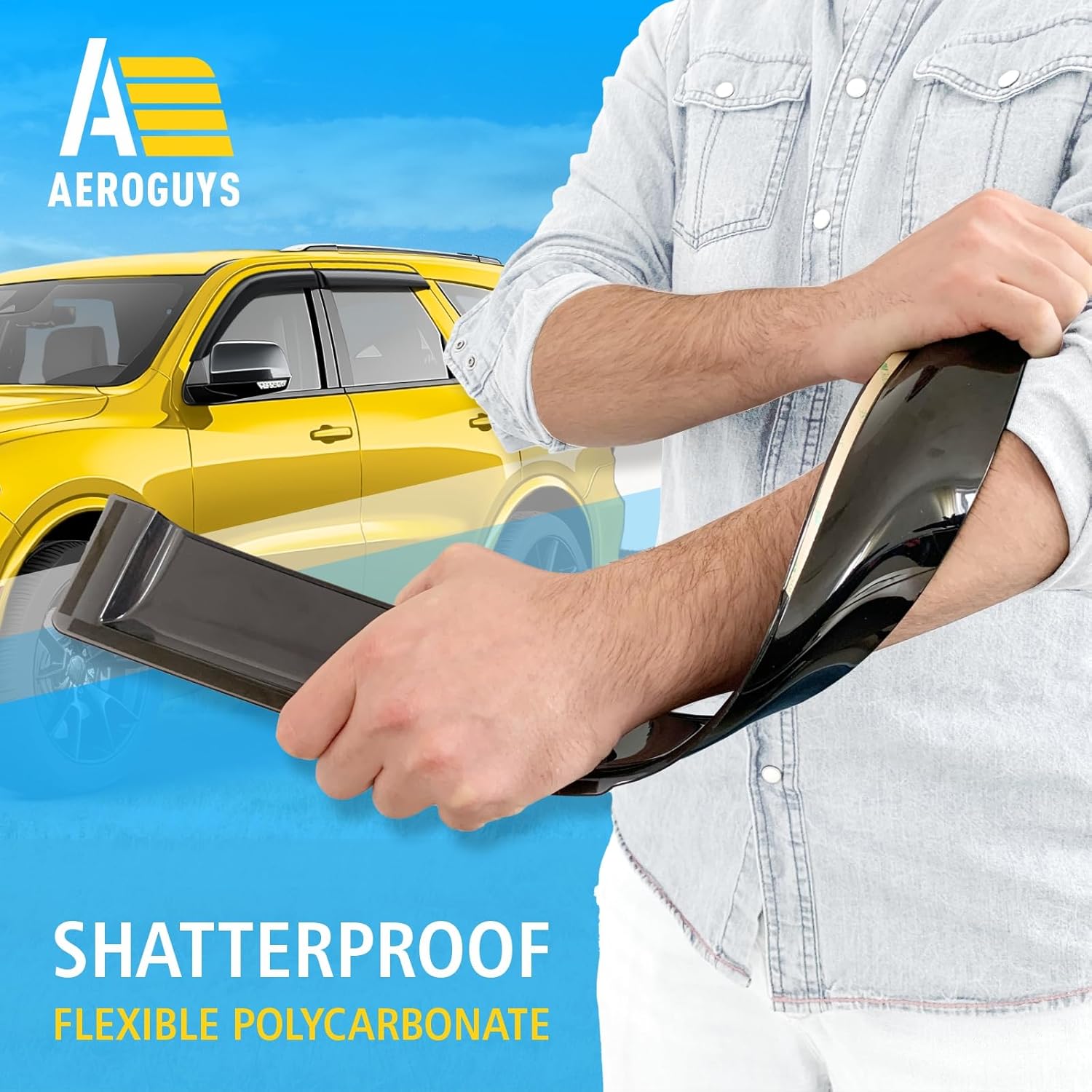 - Incredibly Durable AEROGUYS Auto Window Deflectors – They are made with strong and tough polycarbonate which is clear and scratch-resistant. They also provide UV protection making your ride more comfortable under all weather conditions.