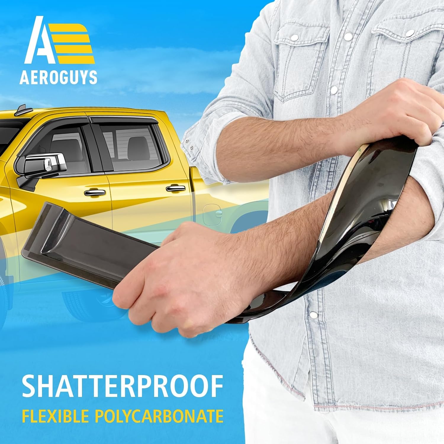 - Incredibly Durable AEROGUYS Auto Window Deflectors – They are made with strong and tough polycarbonate which is clear and scratch-resistant. They also provide UV protection making your ride more comfortable under all weather conditions.