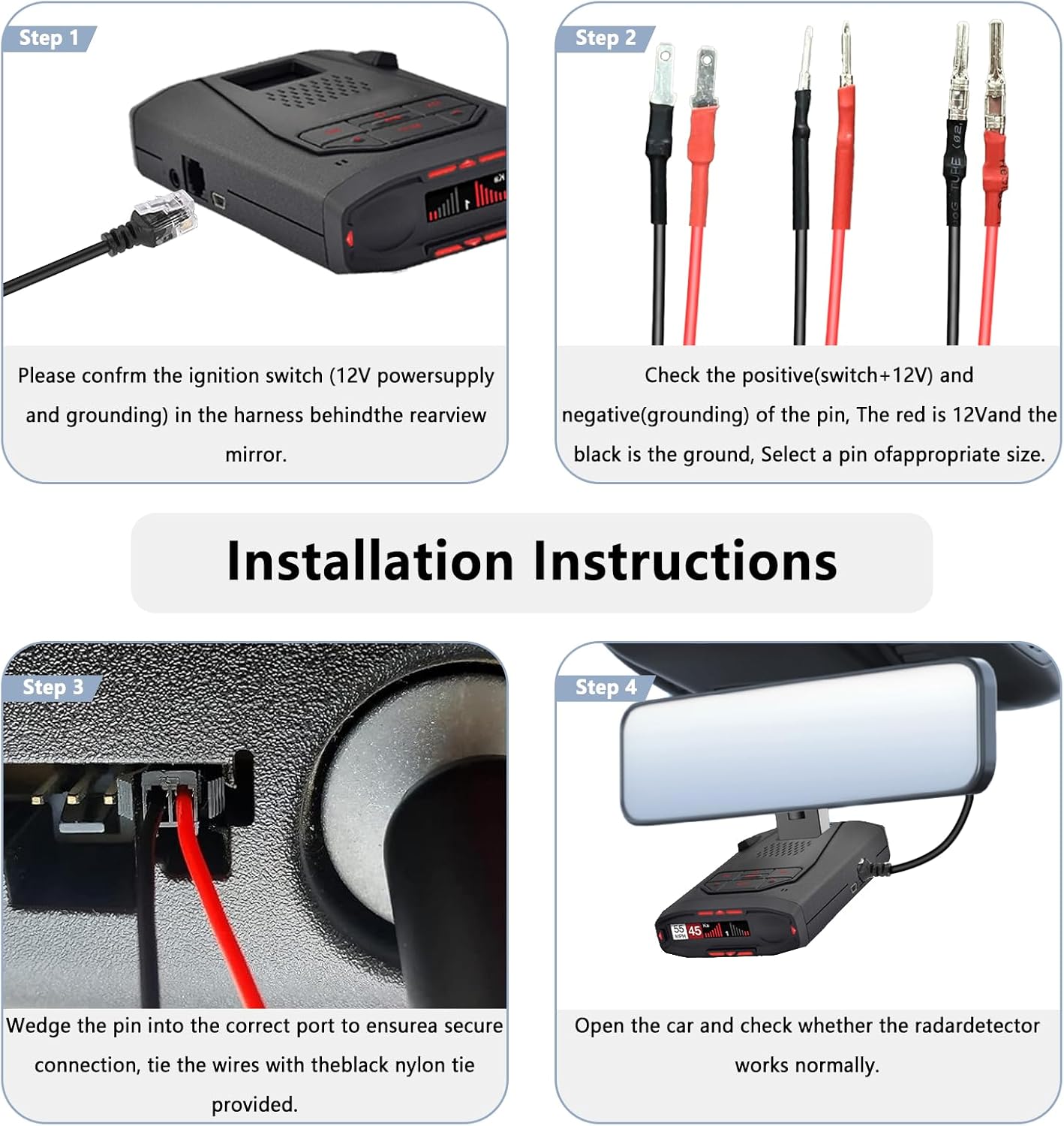 - There are three sizes of pins inside the packaging, which do not require trimming and are plug and play. Simply insert the pins into 12V and ground the mirror wire plug,The accompanying user manual can assist you with installation.