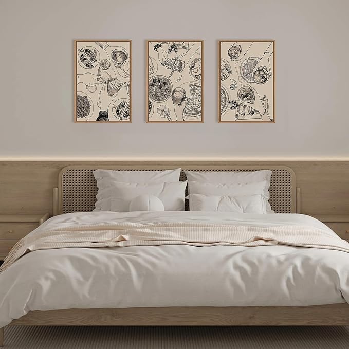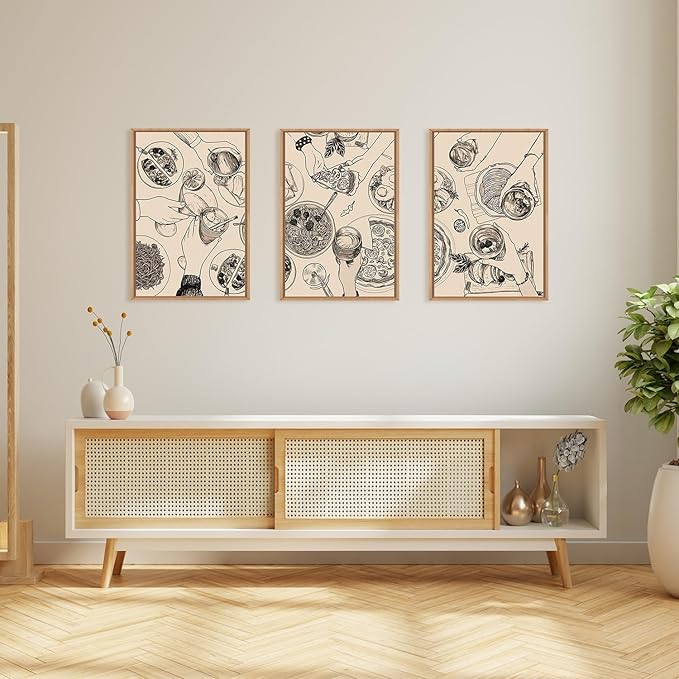 - 【Food and Drink Framed Canvas Wall Art】This food and drinks framed canvas wall art set executed in a charming nature style, captures pizzas and alcohol, evoking a delighted atmosphere. Its modern retro aesthetic is reminiscent of party. Utilizing this artwork as part of your decor will make your gather full of happiness.