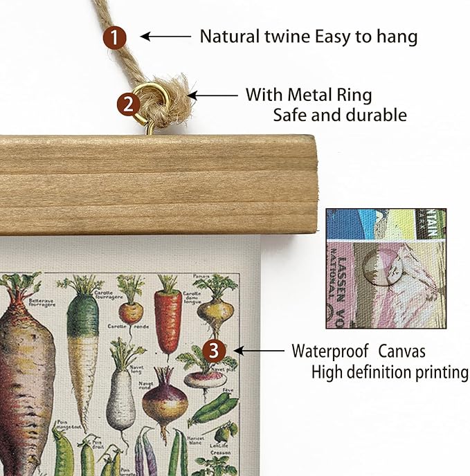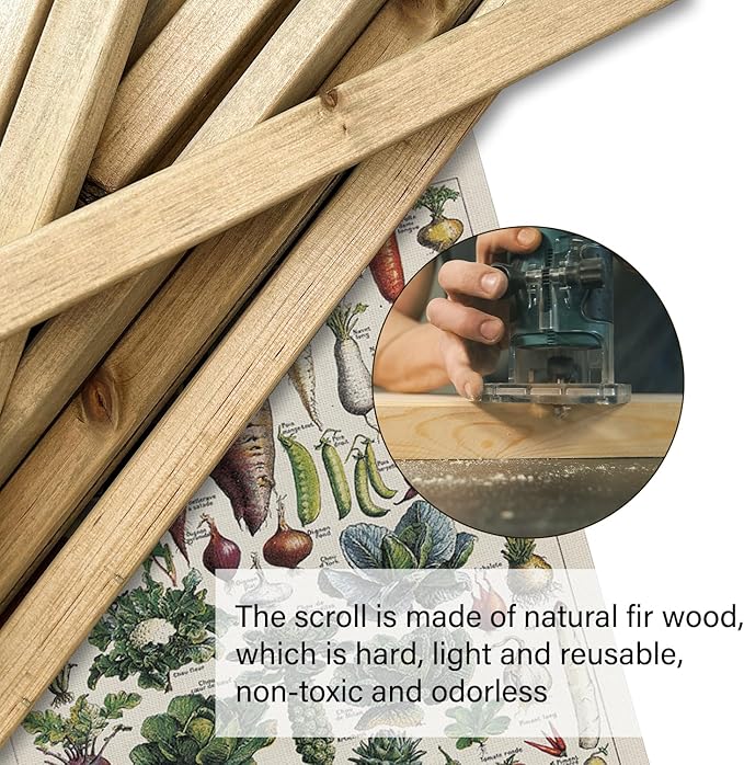 XIAOAIKA Vintage Vegetable Varieties Poster - Illustrated Garden Produce Chart with Wooden Frame - Educational Kitchen Wall Decor Art for Home Chefs and Gardeners 20 x 30 inches