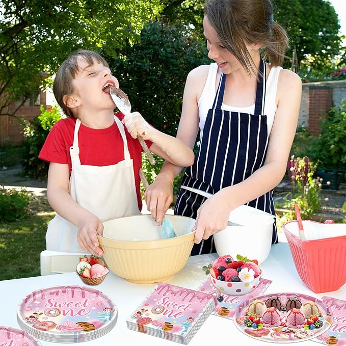 - Quality and design: Design: We use Donut birthday theme design to let you get different compliments at the party. Quality: We use strict food-grade paper materials, strict quality control, high-quality napkins are soft, strong in water absorption.