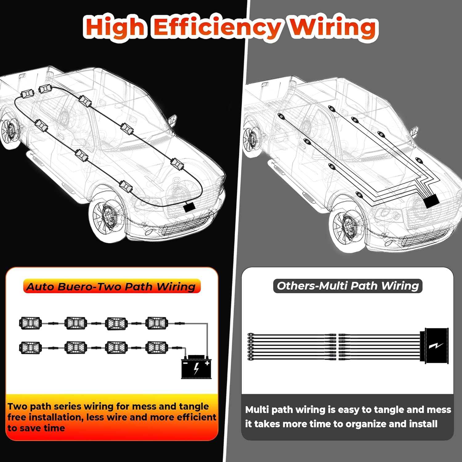 - 【Dual Path Wiring】Hassle-free set up with dual path series wiring. The on/off switch prevents battery drainage, and a safety fuse adds extra protection