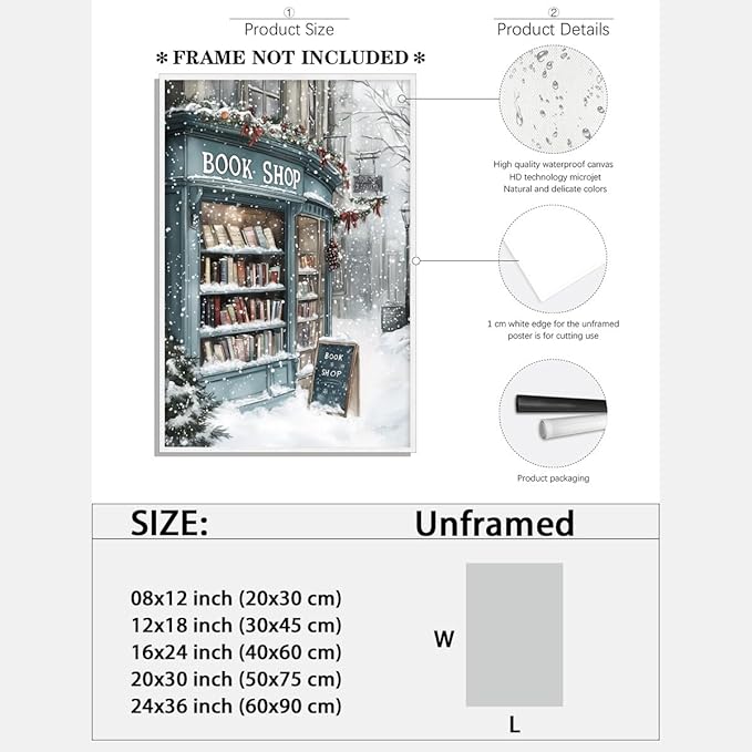 Vintage Christmas wall art Winter Book Shop Poster Print Book Lovers Gift Reading wall art Bookshop Wall Decor Winter Landscape Painting Room decor Aesthetic Unframed20x30inch