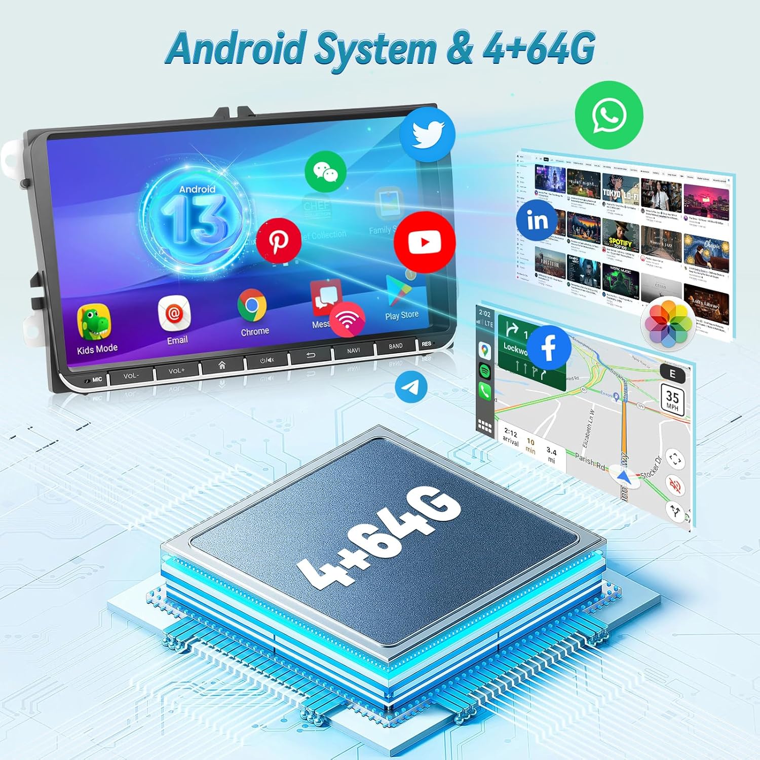 - 【Wireless Carplay & Android Auto】The stereo for VW Passat built-in Wireless/Wired CarPlay and Android Auto, just connect with your smart phone that make it possible for you to access map navigation, phone contacts, email, music and more. Allowing you to make phone calls, navigate with Voice Assistant