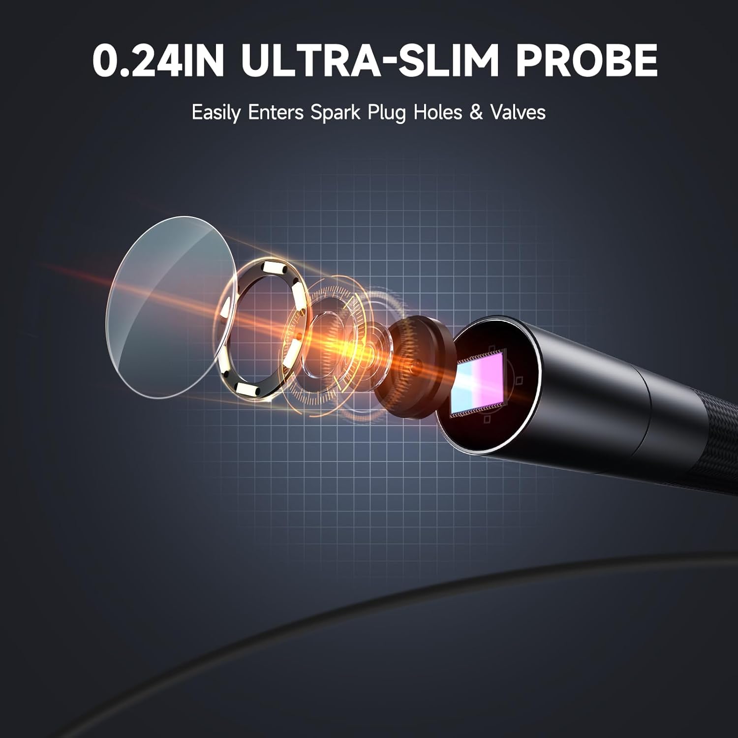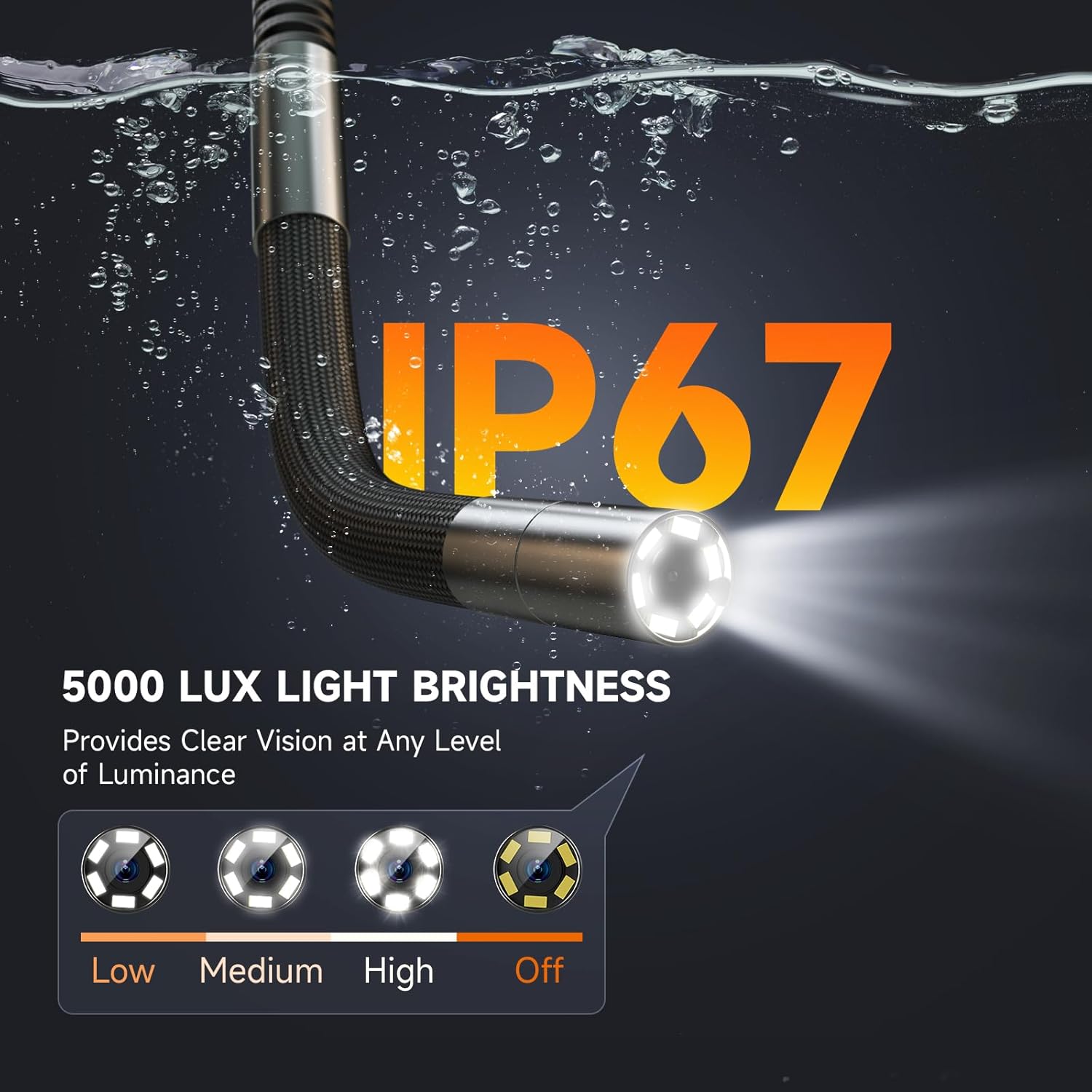 - [HD Camera + 6 Adjustable LEDs: Clear View in Any Lighting] Capture sharp visuals in full HD—even in complete darkness—with six brightness-adjustable LEDs and an IP67 waterproof lens. Perfect for engines, plumbing, or HVAC inspections.
