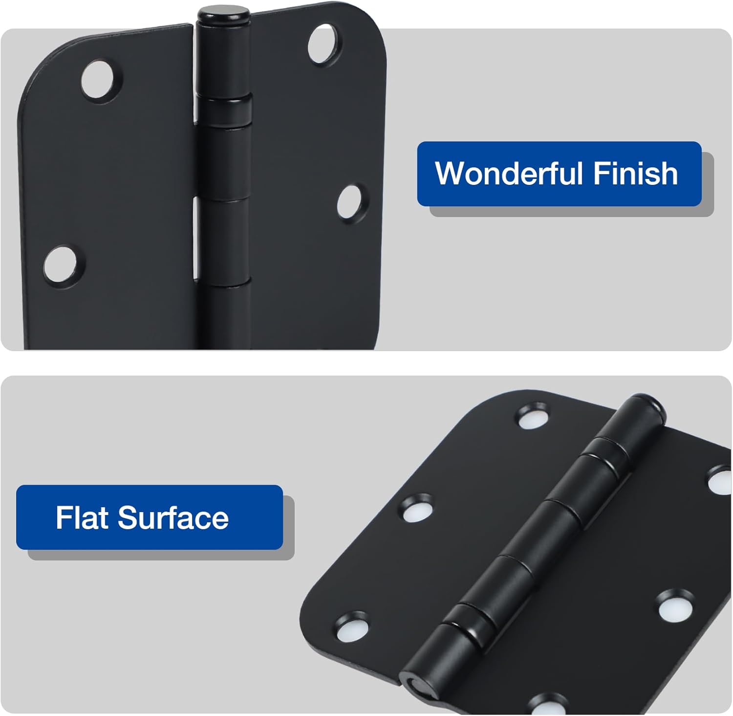 24 Pack Ball Bearing Door Hinges Matte Black 3.5 Inch 5/8"Radius Rounded Squeak Free Interior 3-1/2"Flat Iron Bifold Standard Office Bedroom Indoor for Doors 3 ½" Hardware Home House Decor Essentials
