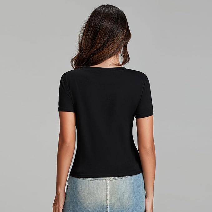 • Skin-friendly material: The y2k aesthetic graphic baby tees for women tight short sleeve crop tops 90s teenagers shirt clothing summer 2025 is made of high quality spandex and polyester, breathable and lightweight, soft to the touch and comfortable to wear, fashion and cute