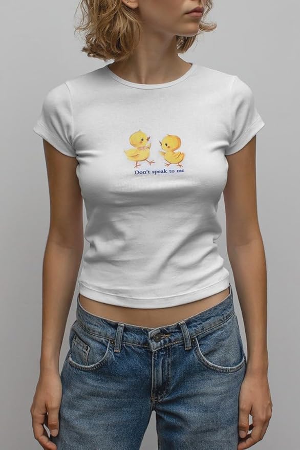 Y2k Womens Graphic Baby Tee Slim Fit Short Sleeve Crop Tops Funny Letter Animal Print Shirts 90s 2000s Streetwear