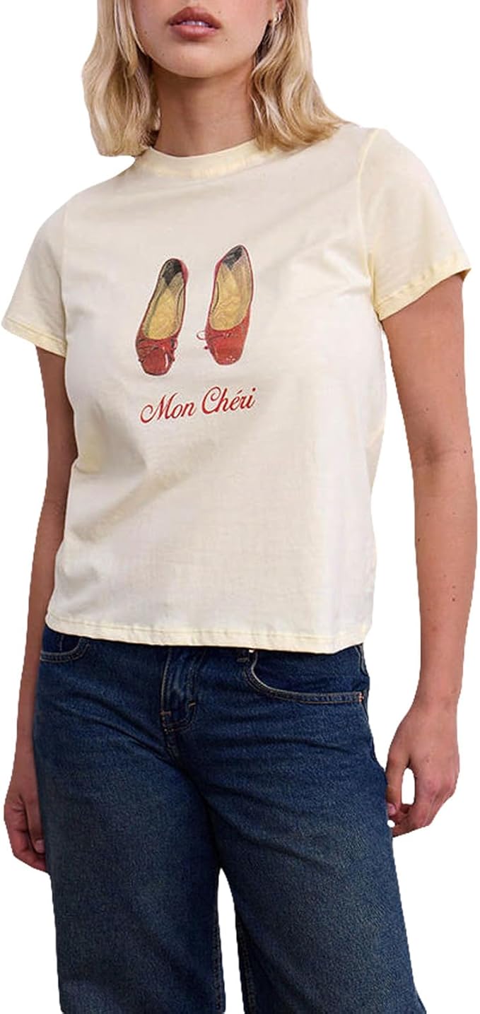 - Package: 1x Y2k Aesthetic Graphic Baby Tees for Women Tight Short Sleeve Crop Tops 90s Teenagers Shirt Clothing Summer 2025