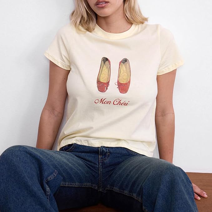 - Personalized design: Cute y2k aesthetic graphic baby tees for women, slim fitted printed short sleeve crop tops, 90s teenagers summer clothing, this t shirts understated elegance, makes both the clothes and you more adorable and fashion