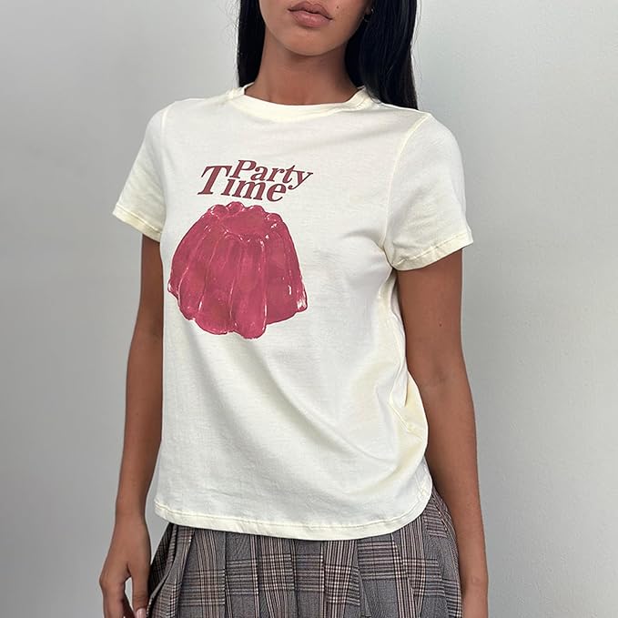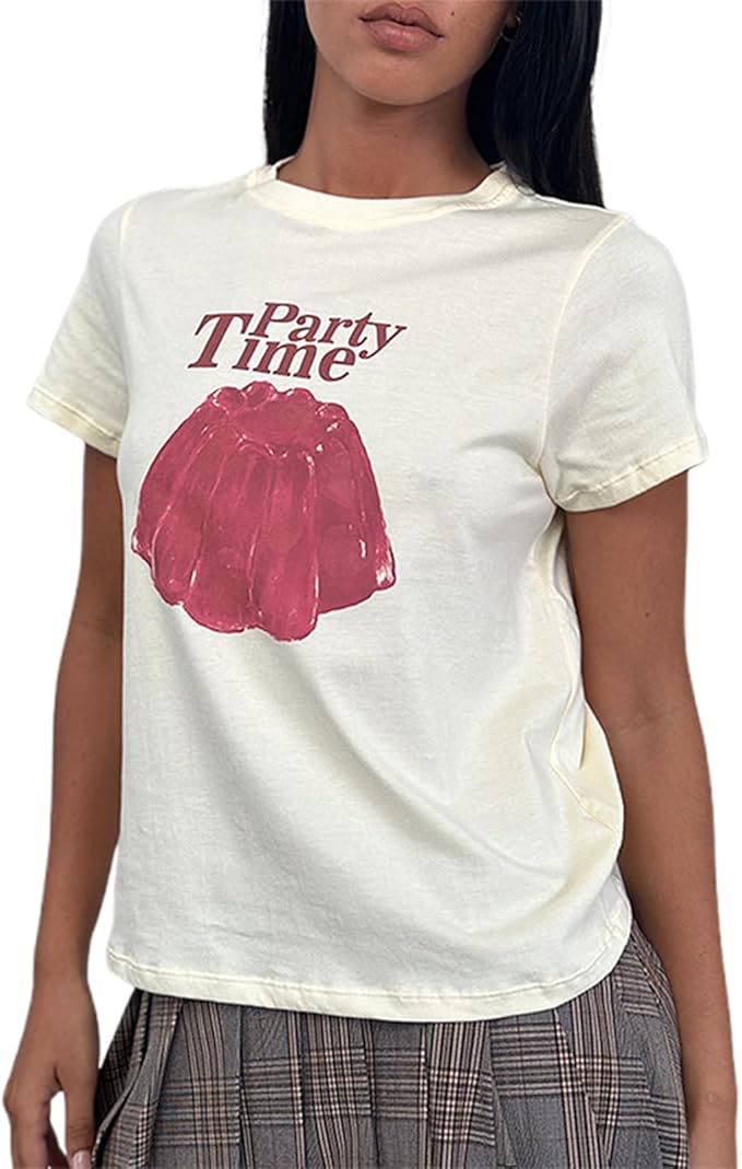 - Package: 1x Y2k Aesthetic Graphic Baby Tees for Women Tight Short Sleeve Crop Tops 90s Teenagers Shirt Clothing Summer 2025