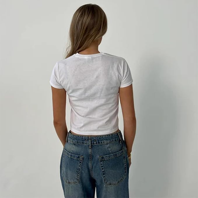 - Skin-friendly material: The y2k aesthetic graphic baby tees for women tight short sleeve crop tops 90s teenagers shirt clothing summer 2025 is made of high quality spandex and polyester, breathable and lightweight, soft to the touch and comfortable to wear, fashion and cute