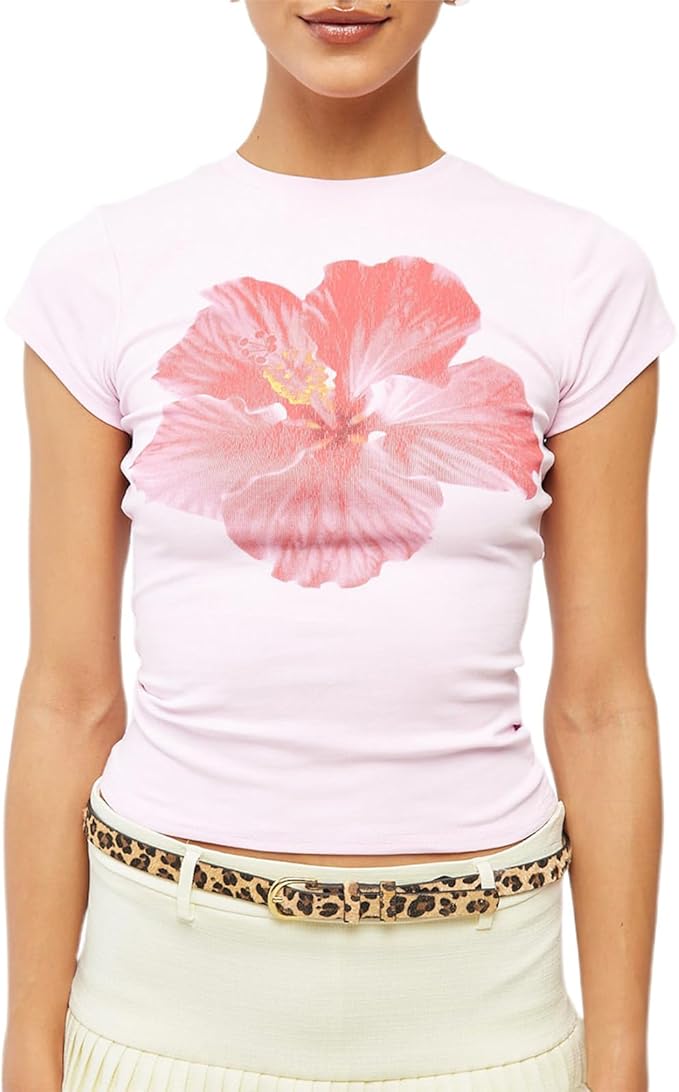 • Personalized design: Cute y2k aesthetic graphic baby tees for women, slim fitted printed short sleeve crop tops, 90s teenagers summer clothing, this t shirts understated elegance, makes both the clothes and you more adorable and fashion