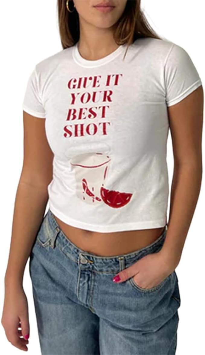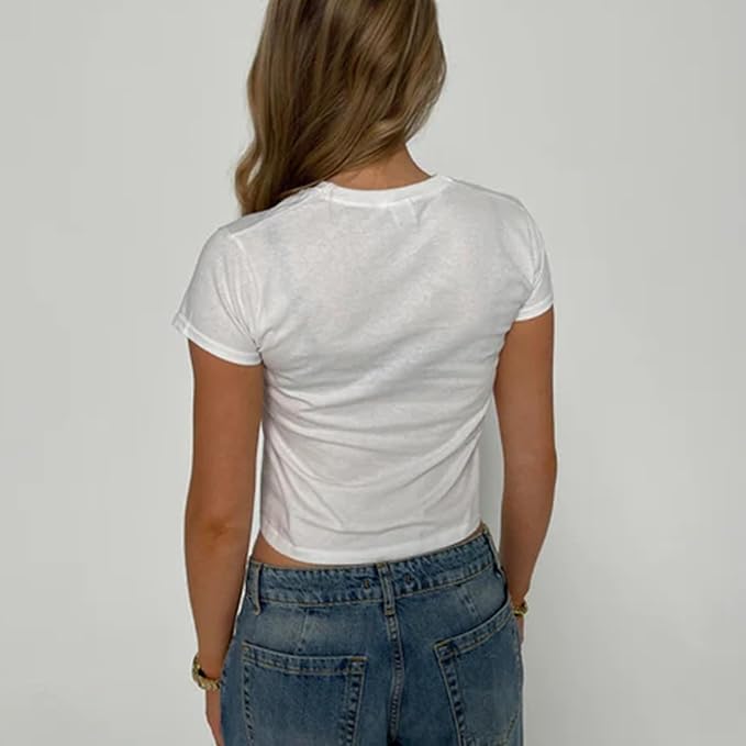 - Package: 1x Y2k Aesthetic Graphic Baby Tees for Women Tight Short Sleeve Crop Tops 90s Teenagers Shirt Clothing Summer 2025