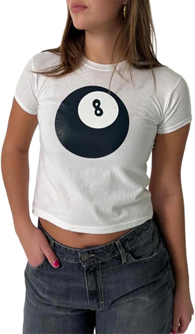 Y2k Womens Graphic Baby Tee Slim Fit Short Sleeve Crop Tops Funny Letter Animal Print Shirts 90s 2000s Streetwear