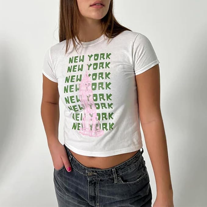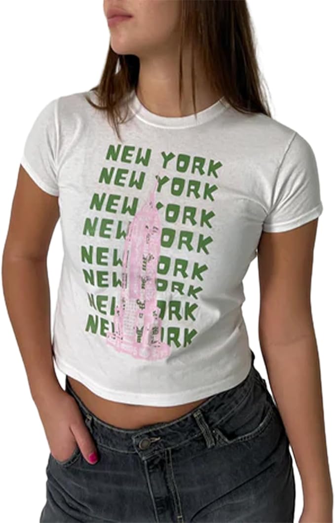 - Package: 1x Y2k Aesthetic Graphic Baby Tees for Women Tight Short Sleeve Crop Tops 90s Teenagers Shirt Clothing Summer 2025