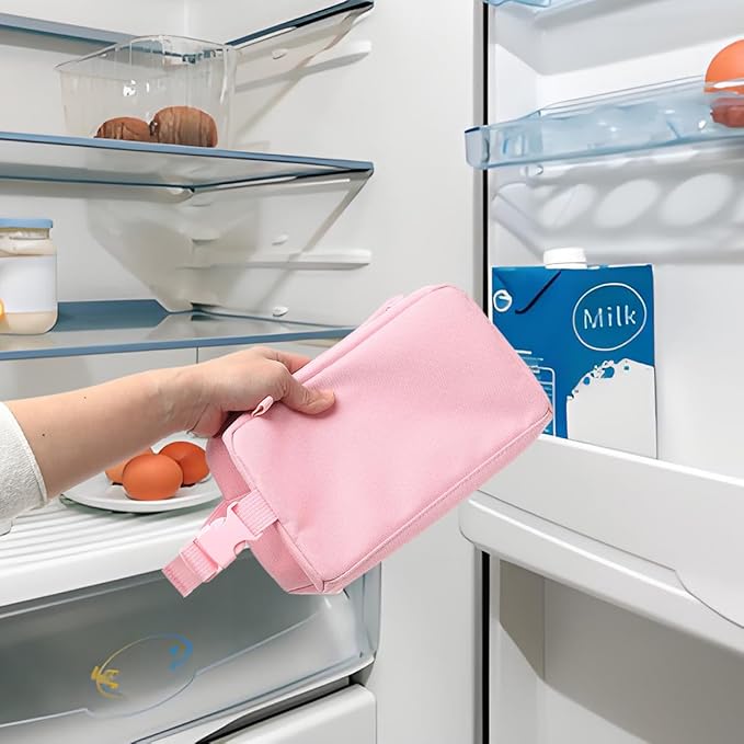 Snack Bags Mini Cooler lunch Bag Freezer Insulated Lunch Box Pouch with Buckle for Adults Work Travel,Pink