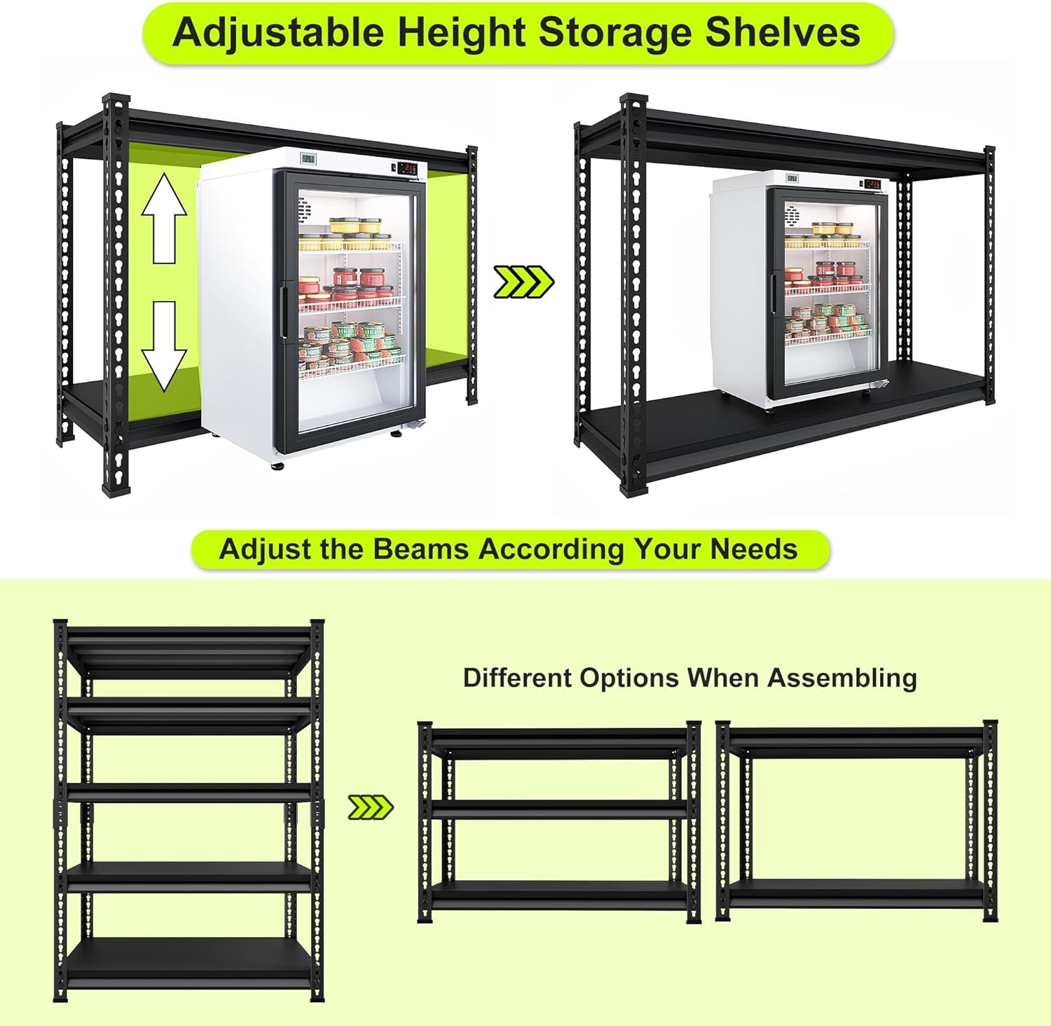 Garage Shelving Heavy Duty 2500LBS Loads, 48" W Adjustable Garage Storage Shelves, 5-Tier Metal Shelving Units and Storage, Industrial Utility Shelf, 48" Wx18 Dx78 H,Black