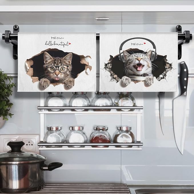 - 【Great Gift Choice】This fun kitchen towel or hand towel kitchen decoration is not only suitable for personal home,but also a gifts for cat lovers parents,grandparents,family,friends,colleagues,neighbors,elder and other important people