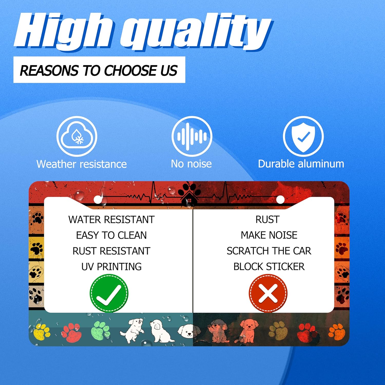 Dog License Plate Frame Cute Dog Paws License Plate Stainless Steel Animal Funny License Plate Holder Personalized Dog Car Accessory Decoration 12.3" x 6.3"for Men Women
