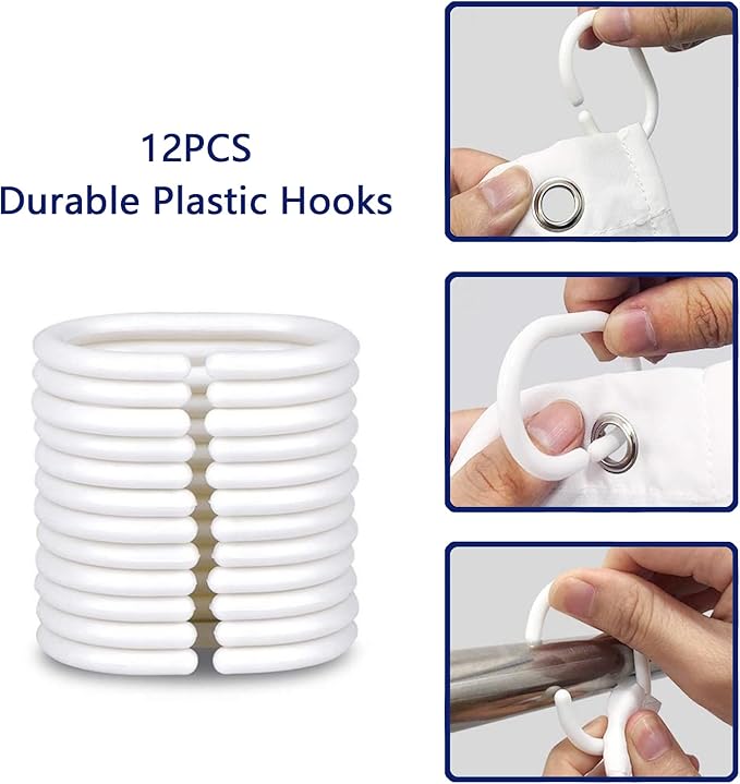 - ★MATERIAL: 100% polyester fabric, water proof. Not see-through, protect your privacy always. Includes 12 plastic curtain hooks.