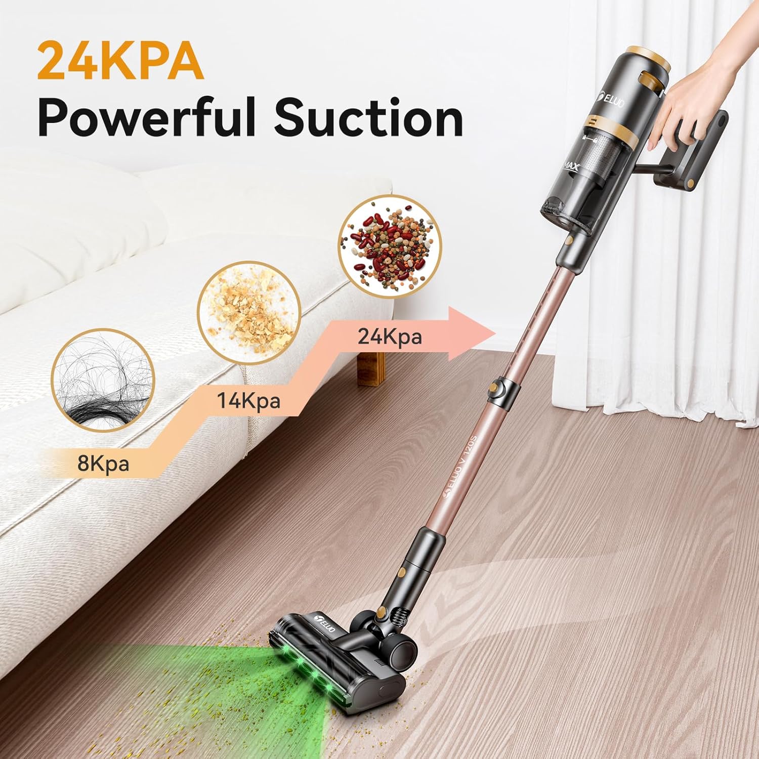 E.LUO Cordless Vacuum Cleaner 350W/≥24KPA Powerful Stick Vacuum with Led Screen Max 60 Mins Runtime Vacuum Cleaner with Rechargeable 2500 mAh Battery for Home Hard Floor Carpet Car Pet