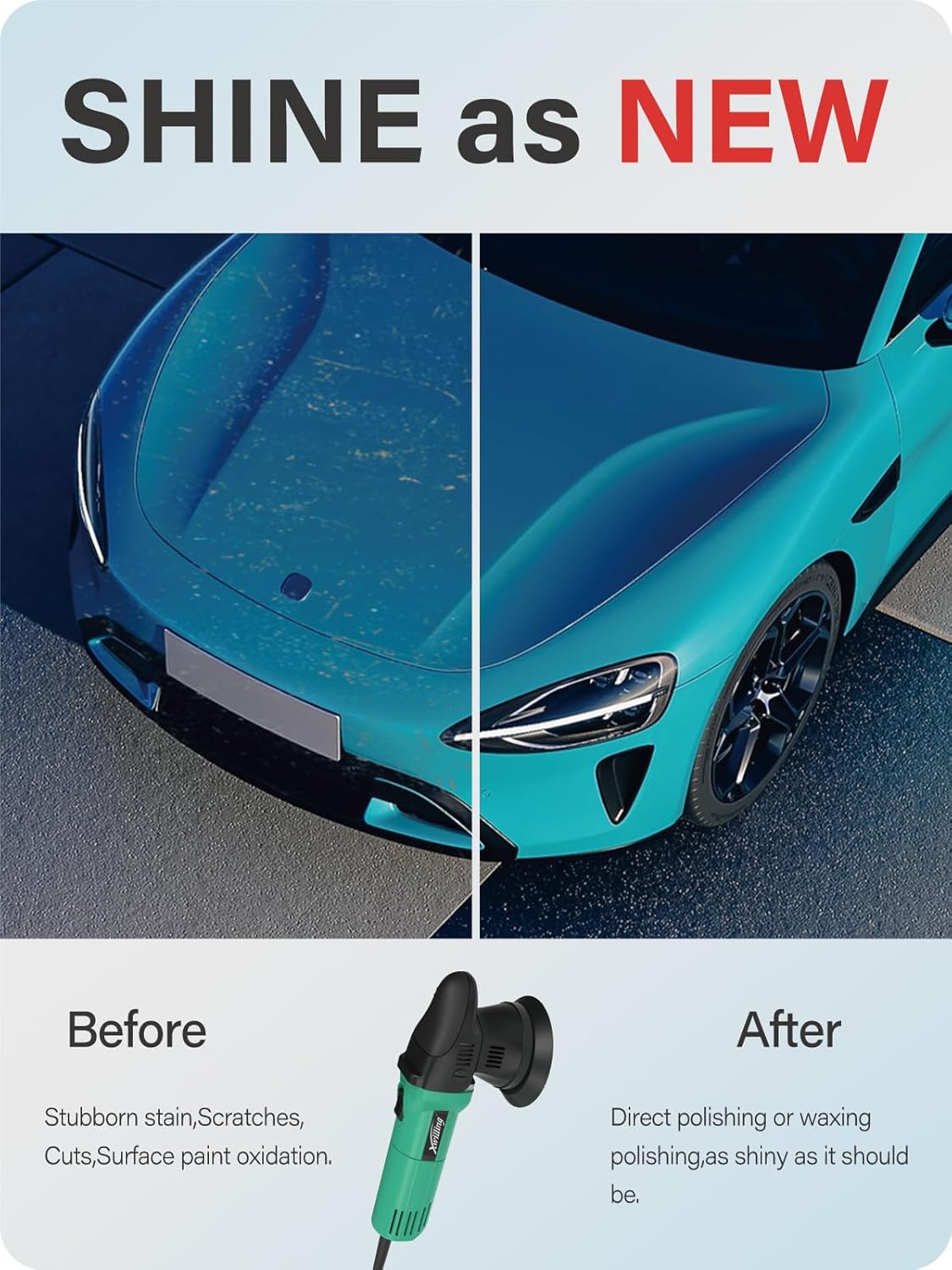 - High-Performance Polishing Machine: High-performance 800 watt motor, 8mm dual action orbital provides the power you need for your project. Carbon brushes are structurally safe, long-lasting, and easy to replace. Heat-resistant copper wire motor allows longer working time. High-performance electric polishers help increase your efficiency