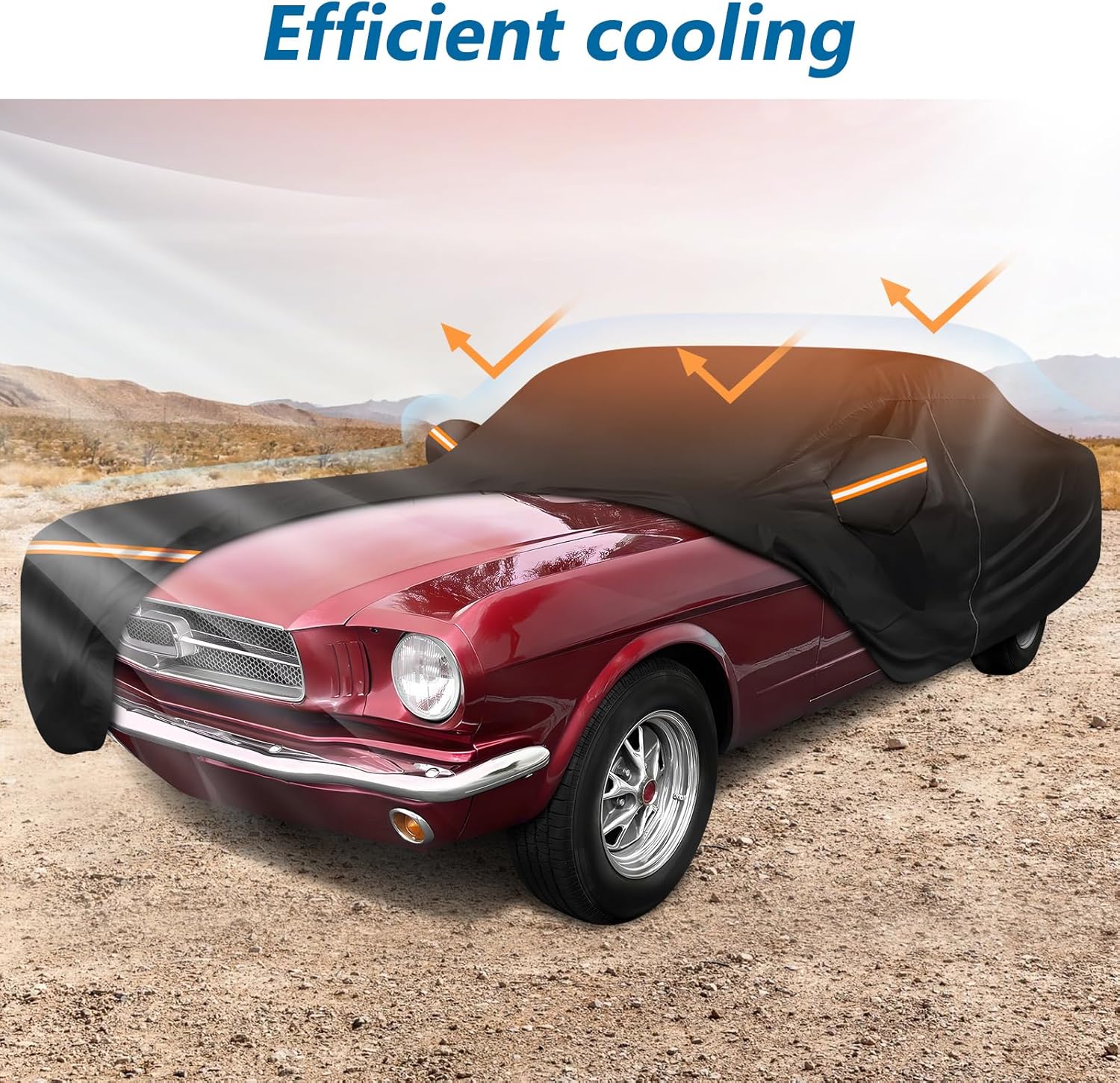 - 【Car Cover for Ford Mustang】 This waterproof all-weather full car cover perfectly custom fits1964-1968 Ford Mustang. Size:181.6 (L)*68.2(W)*51.2(H)in. If there are any quality issues with the product you receive, please contact us immediately and we will send you a new car cover for free.