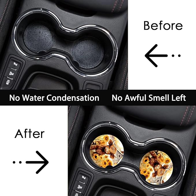 - ✅ Adorable Highland Cow Design: Upgrade your car interior with our Highland Cow Design Neoprene Car Cup Holder Coasters! Featuring cute Highland Cow patterns, these coasters add a touch of personality to your car interior, perfect for Cow lovers and pet enthusiasts,that add a playful touch to your vehicle.