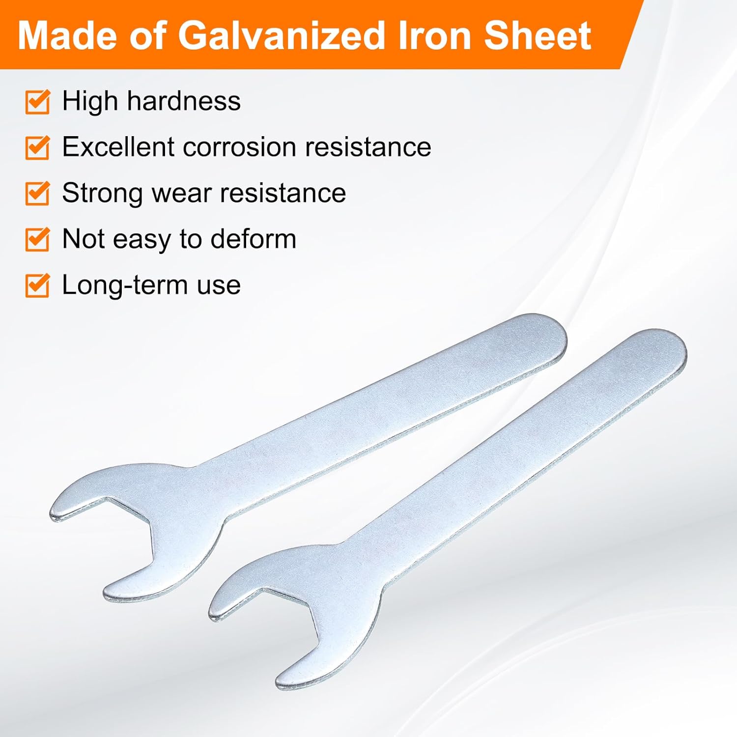 - Long Lasting - Our single open-end wrench is made of an iron plate, which has high hardness and excellent corrosion resistance. The surface galvanizing improves its wear resistance, keeps its surface smooth and reduces wear, is not easy to deform, and can be used for a long time.